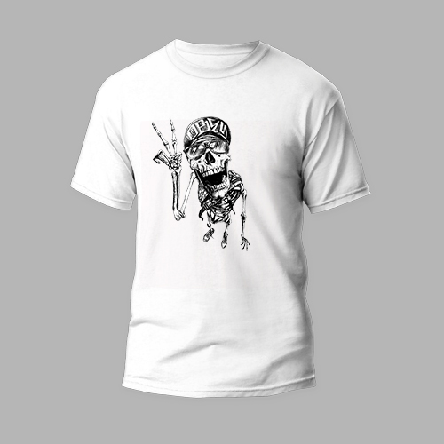 white round neck t-shirt posing skull design